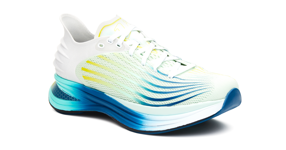 By adjusting midsole density in the heel and midfoot to the forces you generate at 5 minutes per mile, we’re able to give you the precise amount of cushioning you need at that pace, no more and no less. This pace-tuned cushioning ensures stability, comfort, and health benefits over a lot of blazing fast miles.